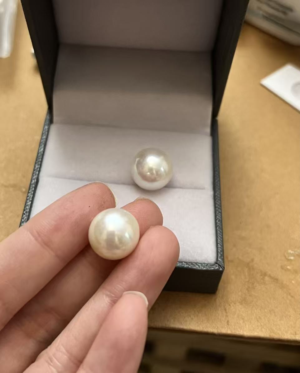 - 高等光澤-鏡面感強、正面乾淨;近看才見極細天然小點。絕對可媲美澳白珍珠。