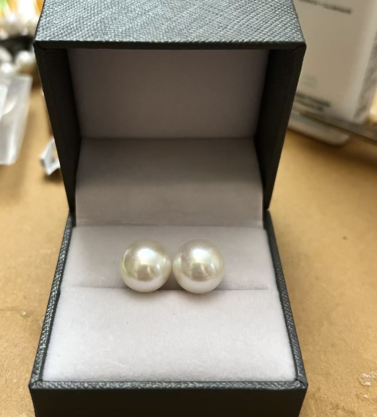 12.4 mm 頂級賽澳白淡水珍珠耳環