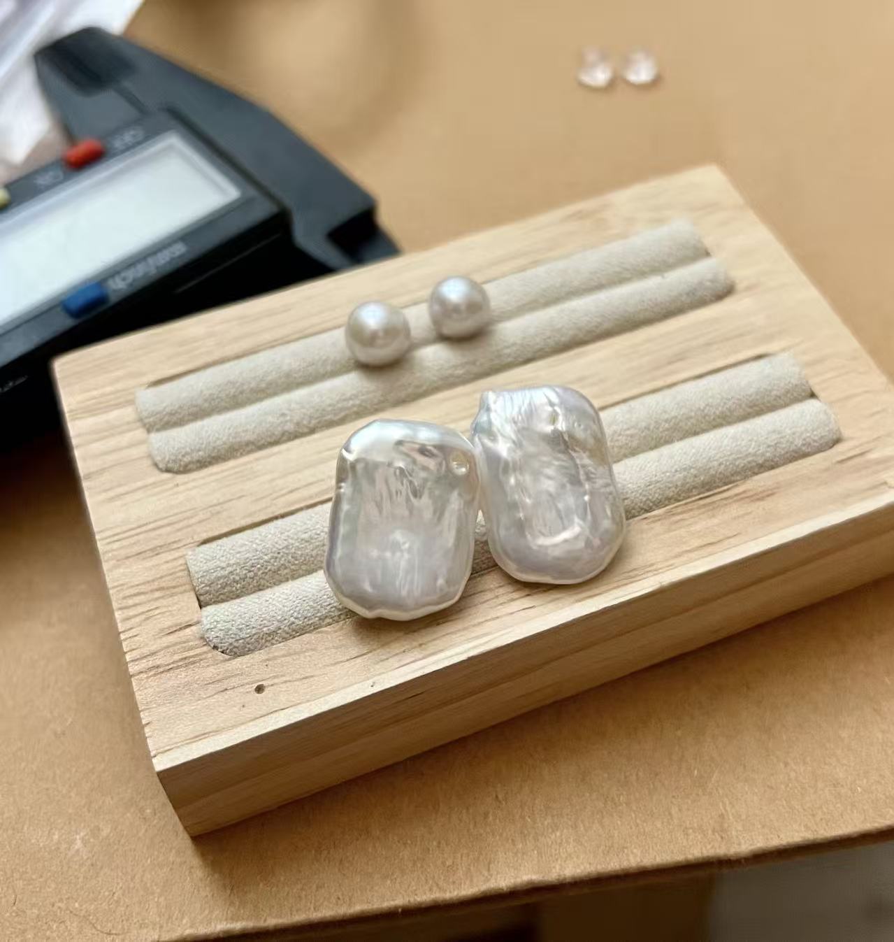 • 嚴選材質: 20.5–21 mm 天然方形巴洛克珍珠,搭配抗敏 S925 純銀耳針,耐用舒適。
