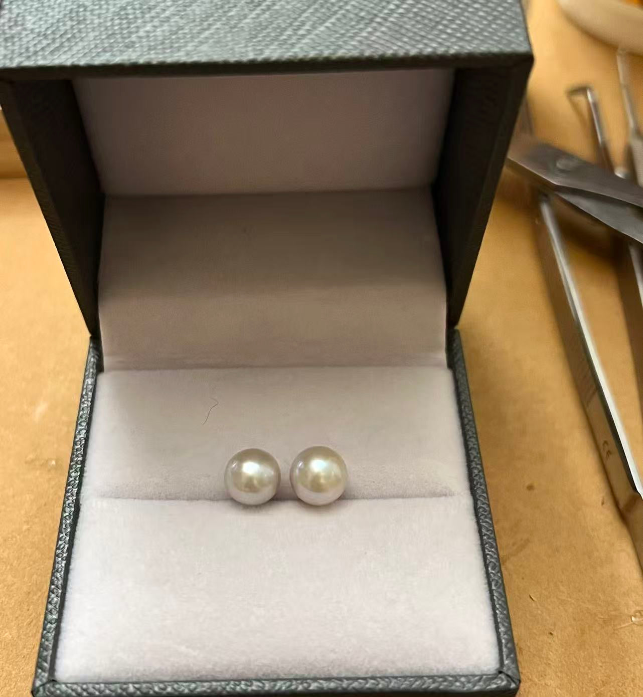 7.5 mm 真多麻 Akoya 珍珠耳環