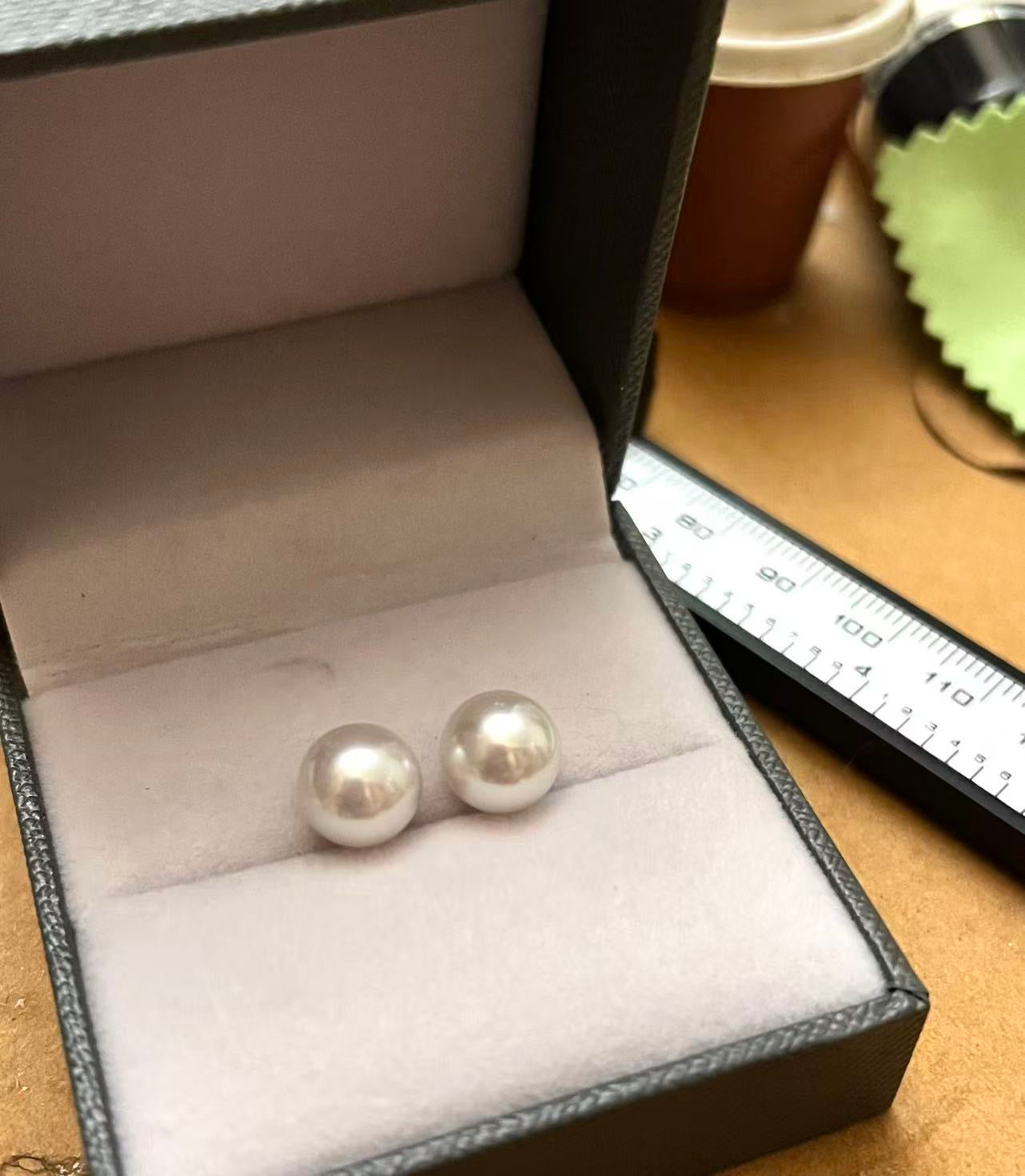 9.3 mm 頂級淡水賽澳白珍珠耳環