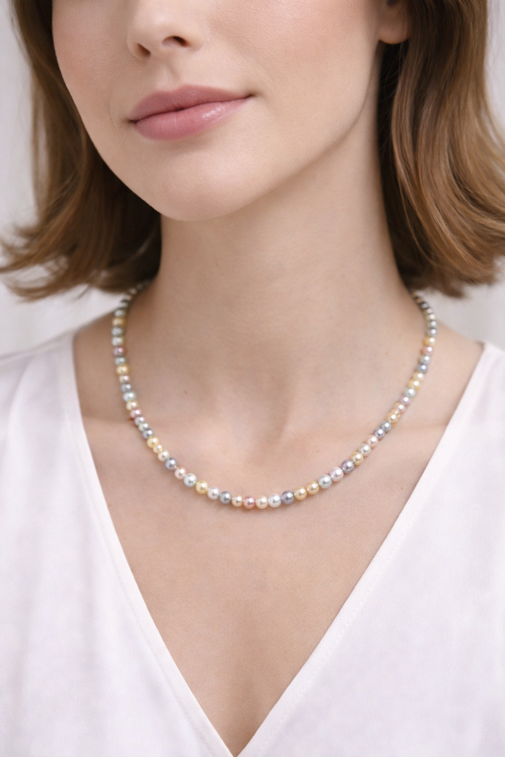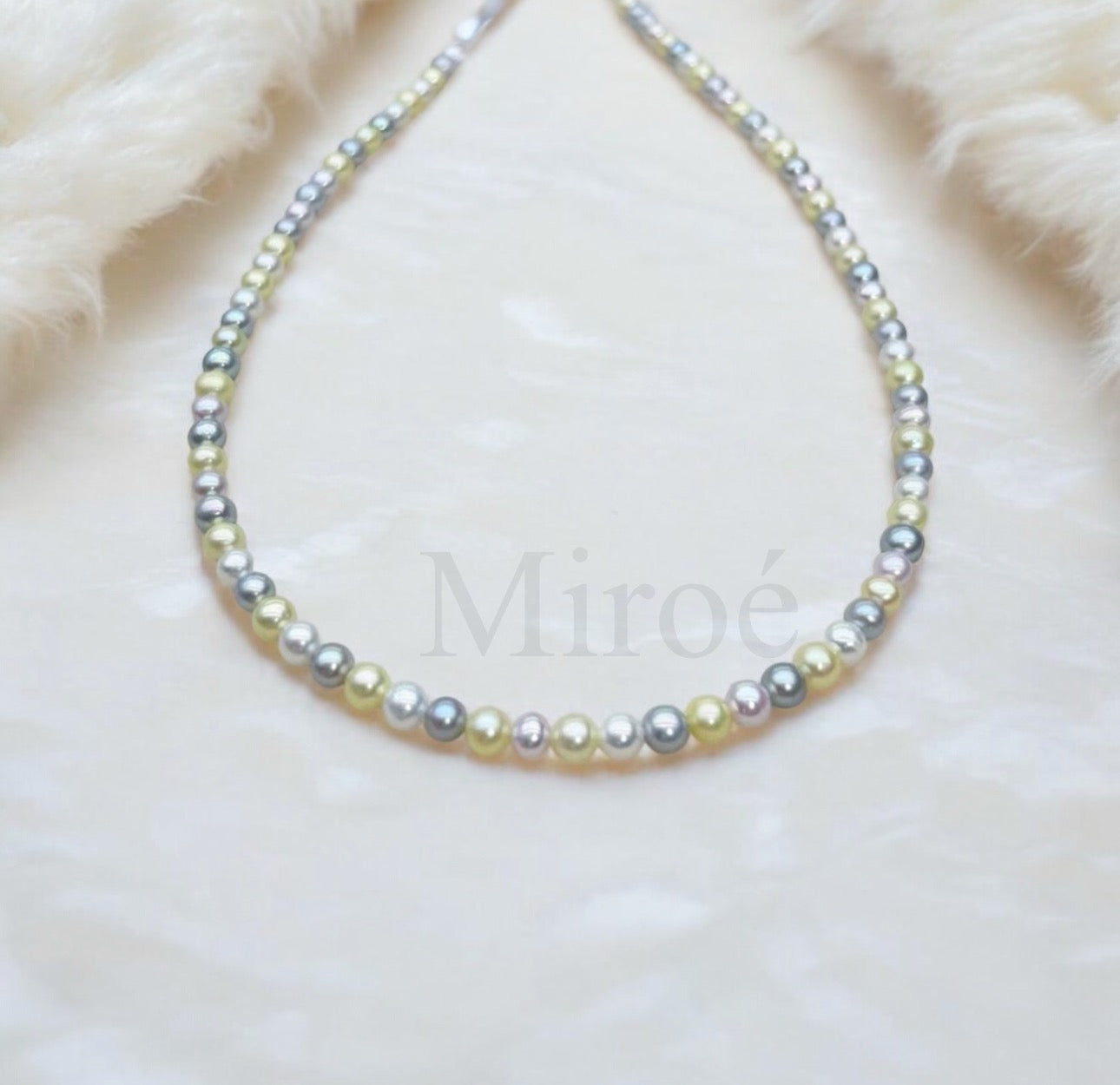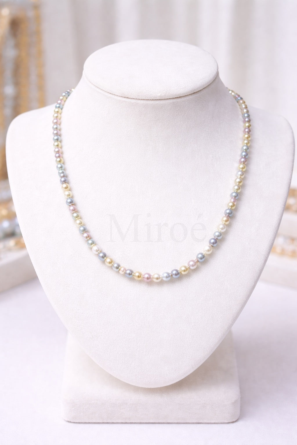 奶白、柔粉、淡紫、淺金、銀灰等色調自然交錯,每一顆都有微妙不同,營造出柔和而有層次的珠光感。