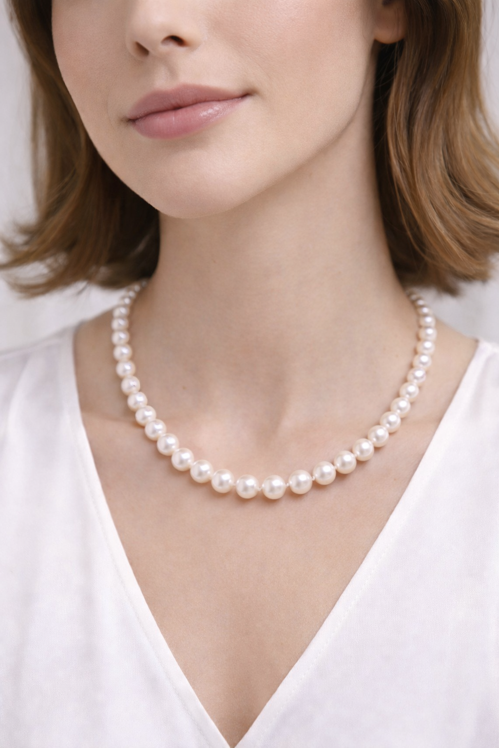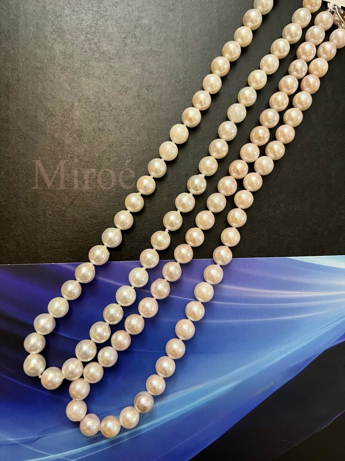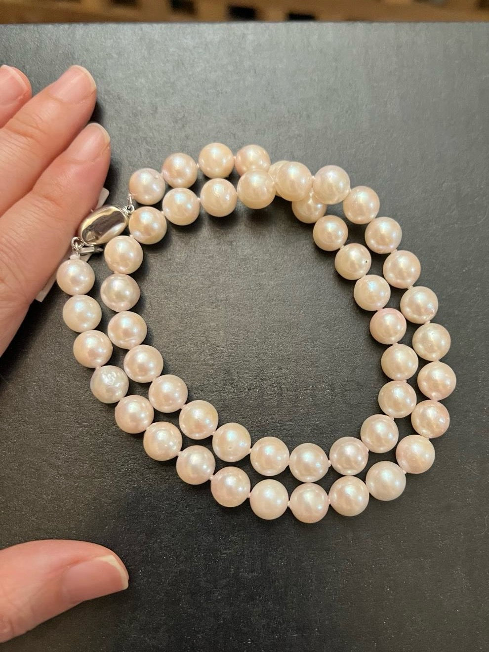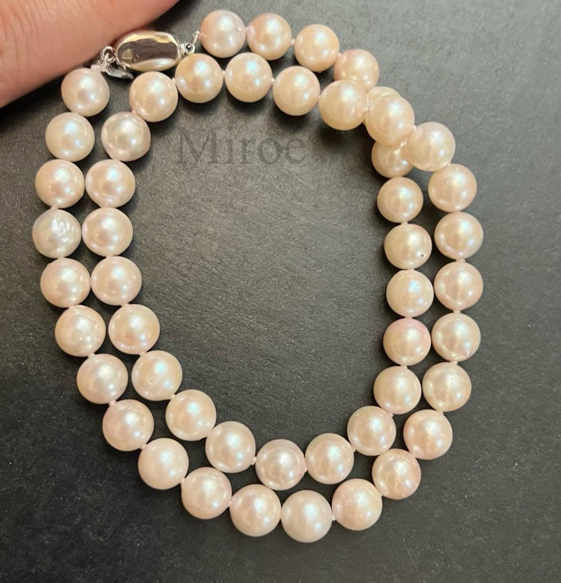 這條日本 Akoya 海水珍珠項鍊,尺寸介乎 8–9mm,屬於非常實用且耐看的經典大小。